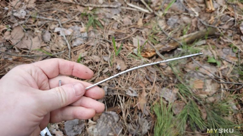 Но сам колышек пострадал — сильно погнулся посередине, но это судьба всех таких колышков. У меня прямых вообще нет.