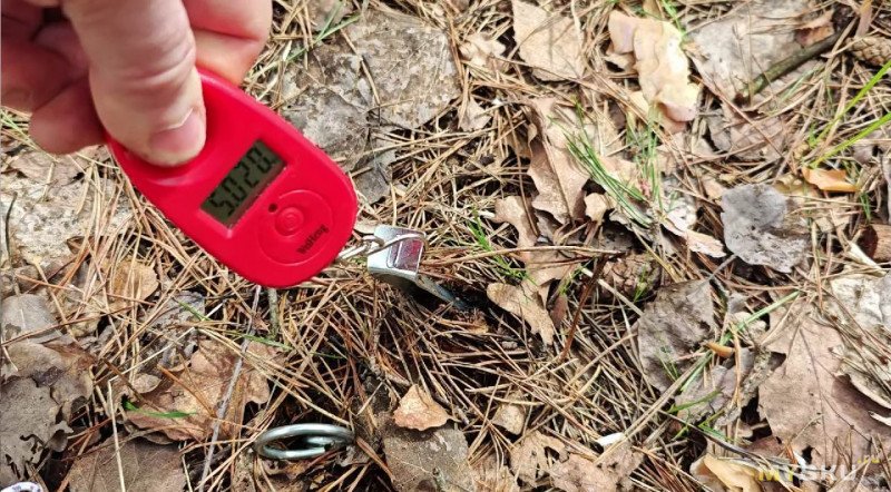 Так и есть, как я не старался, но вытащить одной рукой винтовой колышек не смог. Максимум, что заметил на безмене — почти 20 кг.