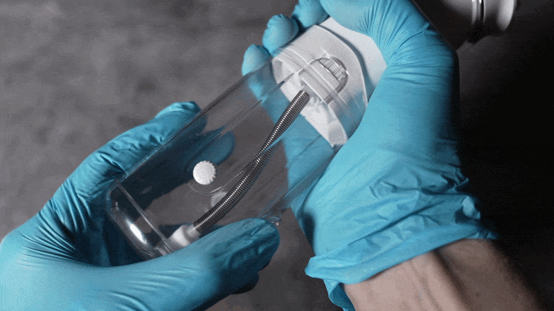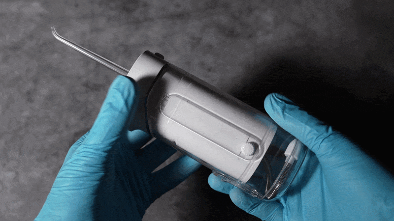 Раскладывается ирригатор очень легко, достаточно развести тушку устройства и резервуар в противоположные друг от друга стороны.