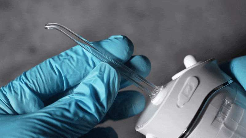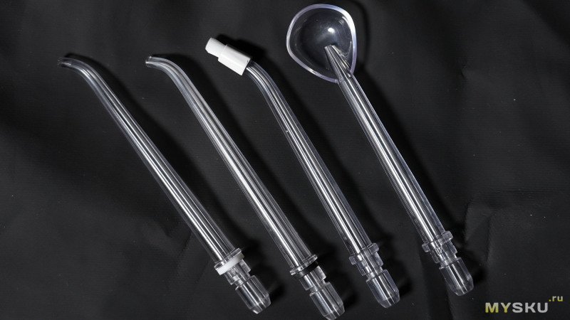 Наконечники фиксируются через уплотнительную резинку. Развернуть можно, но поворот будет тугой, без щелчков, как в некоторых других моделях ирригаторов.