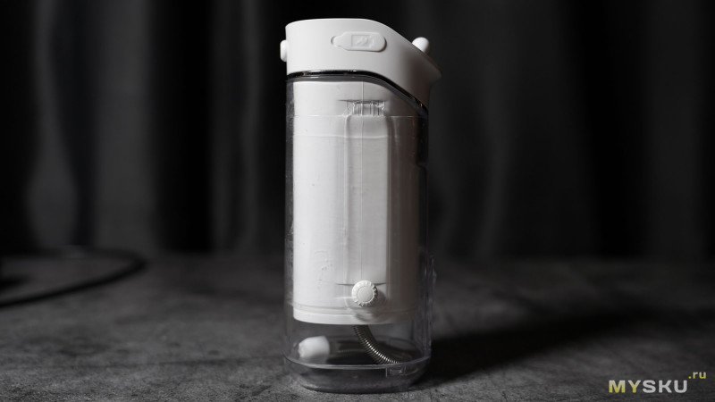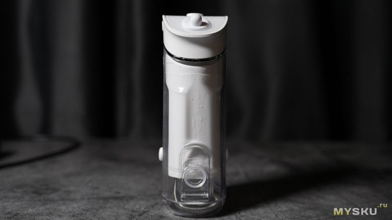 В обоих положениях, закрытом и раскрытом резервуар фиксируется на небольших пазах на корпусе ирригатора. Есть уплотнительная резинка.