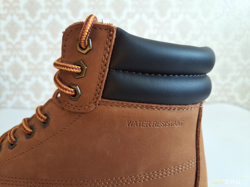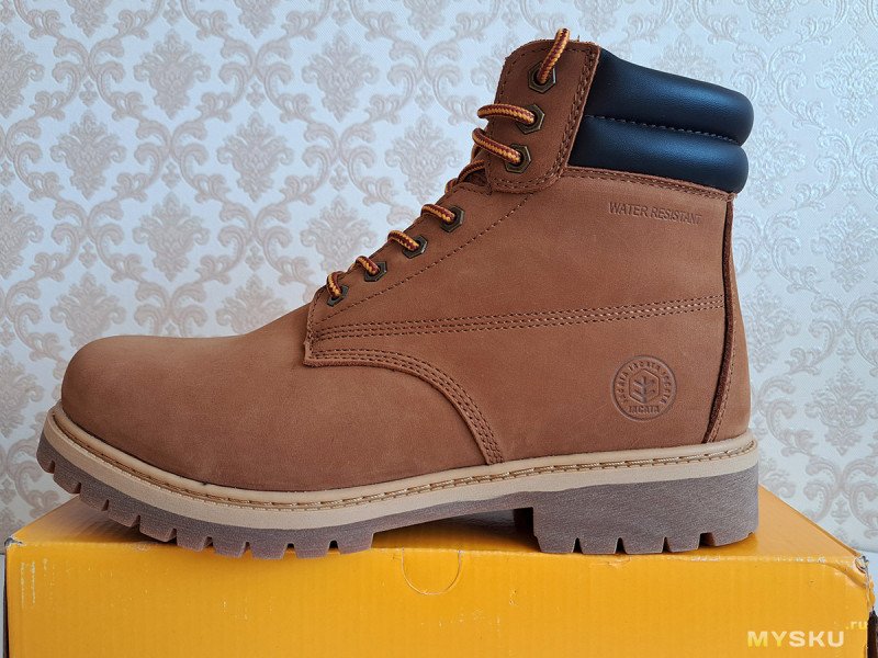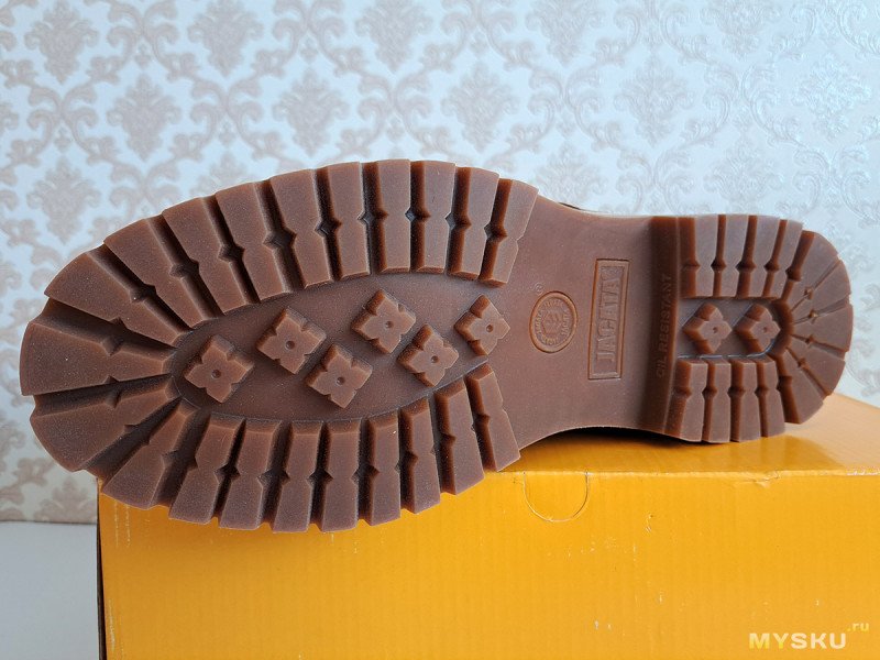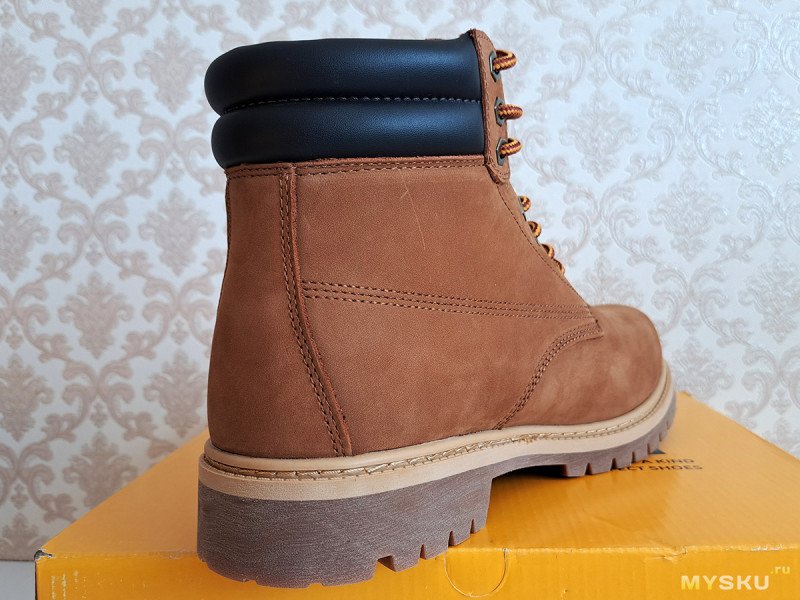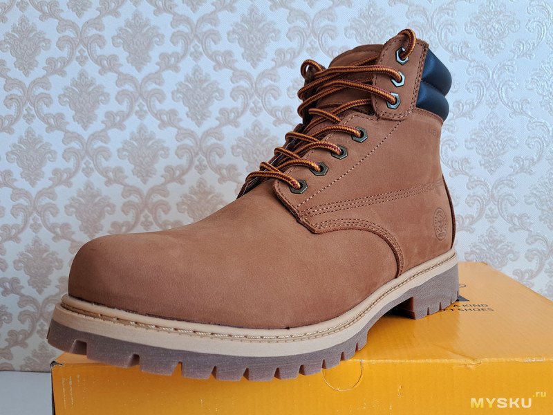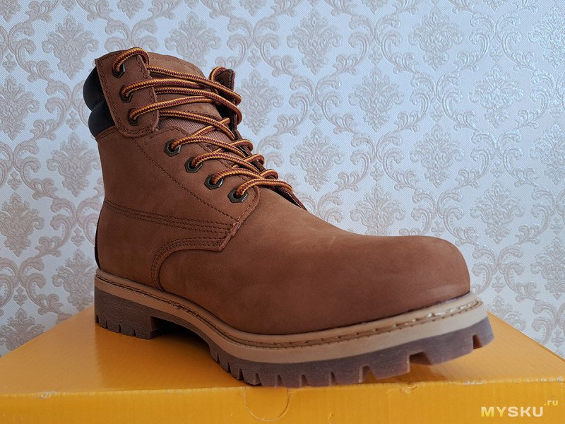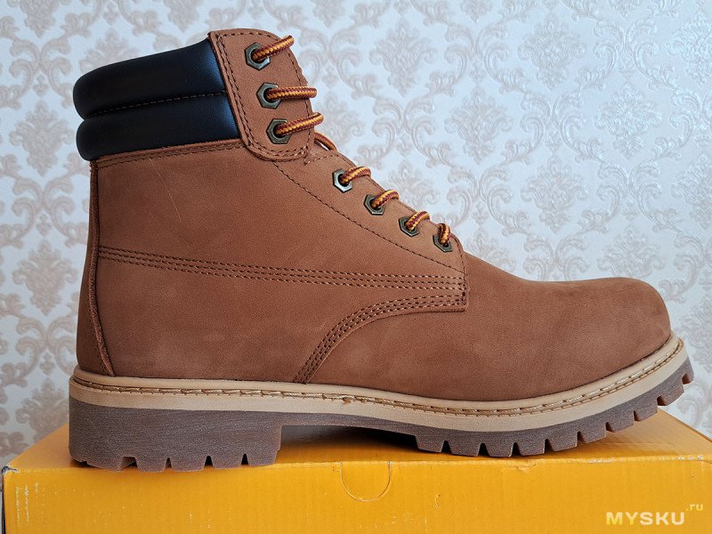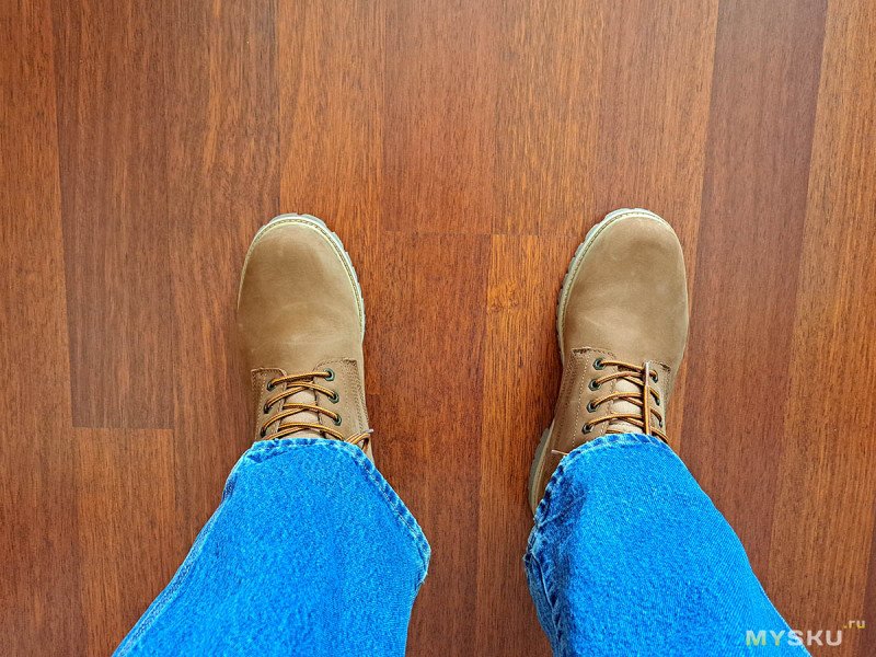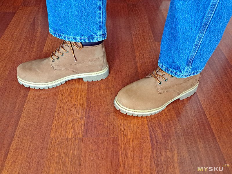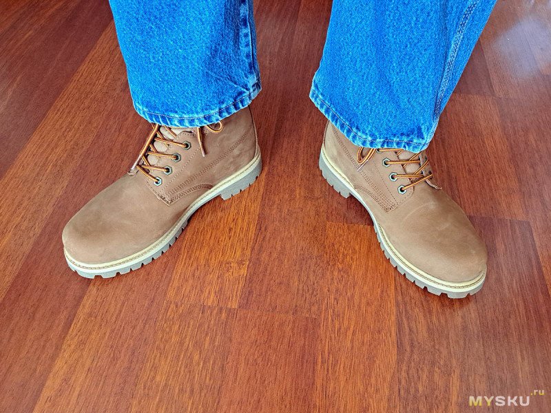 С такой обувкой «по мотивам» сегодня и познакомимся. Из плюсов: толстая натуральная кожа, жесткая резиновая подошва, хорошая водозащита. К минусам можно отнести: вес, жесткость и сомнительное удобство, как и у желтых оригиналов.