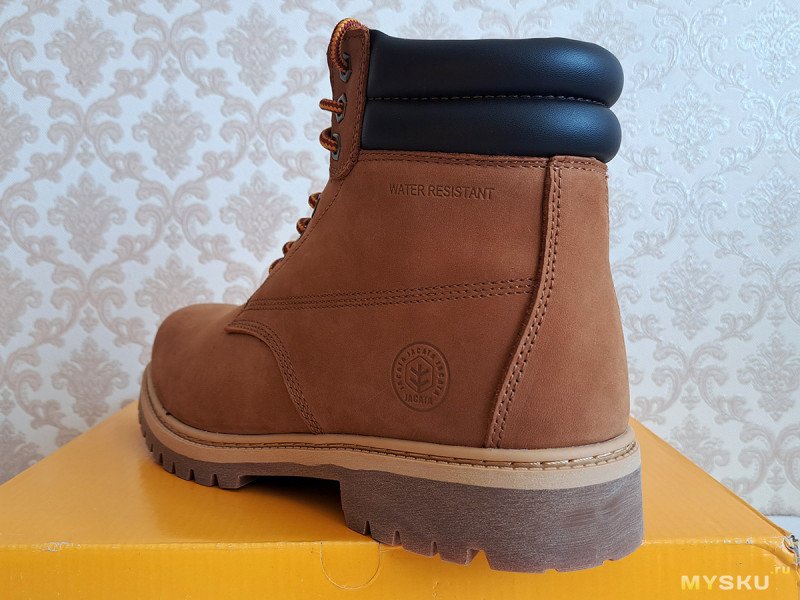 Еще я пару раз пробовал купить на ВБ Jakata в пшеничном цвете, очень похожие на Тимберенды. 45 размер попадался редко и стоили ощутимо дороже — 32 тыс. тенге.