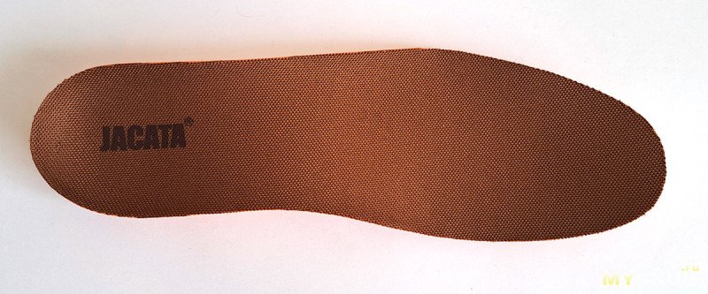 Выдавленный значок, как у Тимберлендов. С фантазией у китайцев не очень, просто написали 4 раза Jakata. Спасибо, что не Fashion.