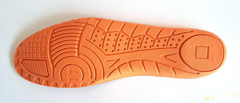 Подошва из плотной резины. Выглядит так, как будто ее обтачивали по бокам.