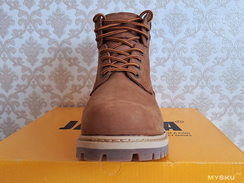 Так, а зачем я купил Jakata? Не сказать, что мне сильно нужны рабочие ботинки или обуяла страсть к желтым Тимберлендам. Просто именно на коричневую модель была хорошая цена в 24 тыс. тенге. Обещалась хорошая кожа, вот я и купил посмотреть.