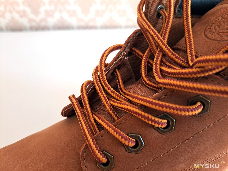 Шнурки круглые, в типичной для рабочих ботинок желто-коричневой расцветке. Длина адекватная.
