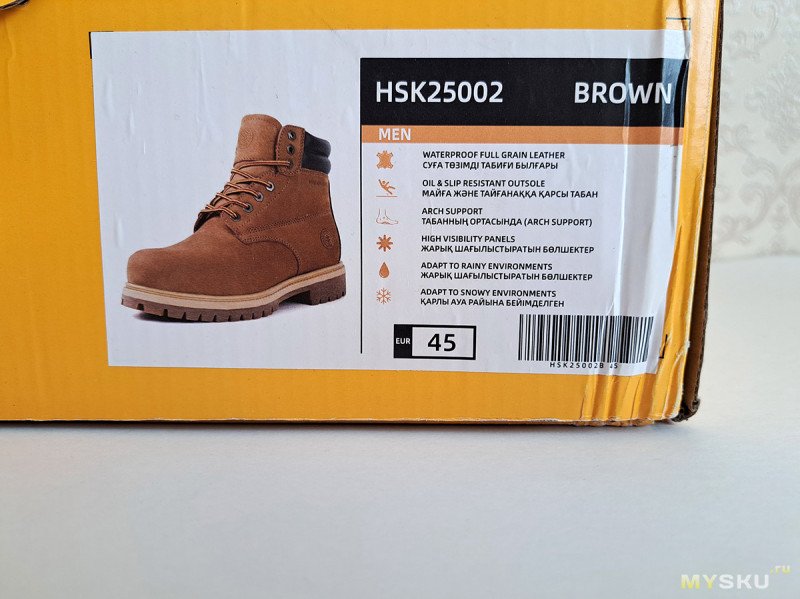 В отзывах выглядели очень красивыми. Но живьём оказались не очень. К тому же подозрительное качество проклейки подошвы. И еще странная ситуация с утеплением: сверху слой подкладки из кожзама, в носке ничего и язычок тоже из одного слоя кожи. В общем бессмысленная пародия на Premium. Отказался. Кстати, они были из другого магазина и никаких этикеток на казахском.