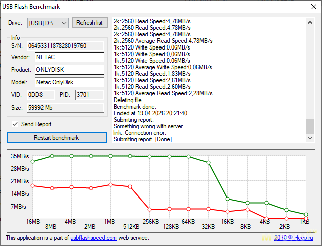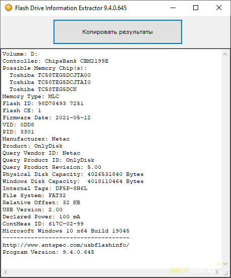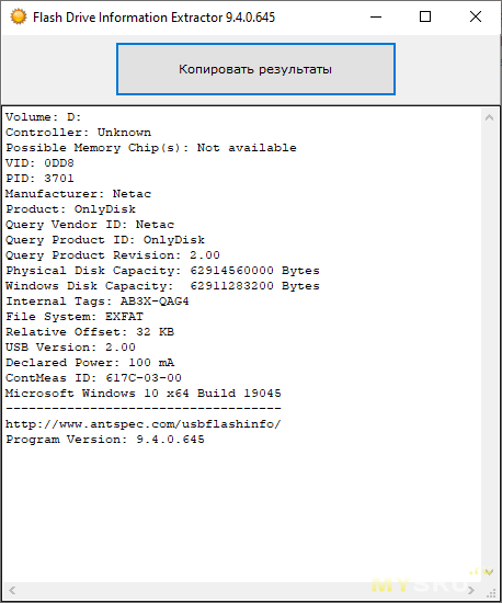 Следующая модель — на 64 Гбайт от Netac U116. Программа Flash Drive Information ничего не нашла.