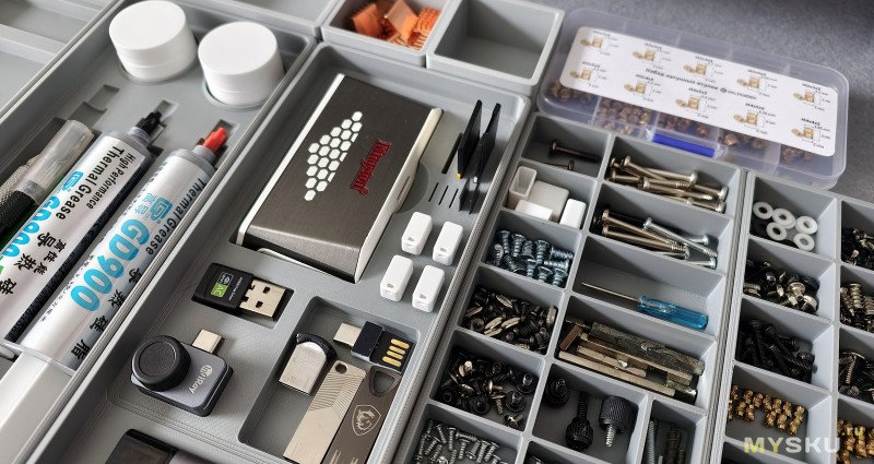 Для дома на рабочем месте в выдвижном ящике сделал органайзер на 3D-принтере.