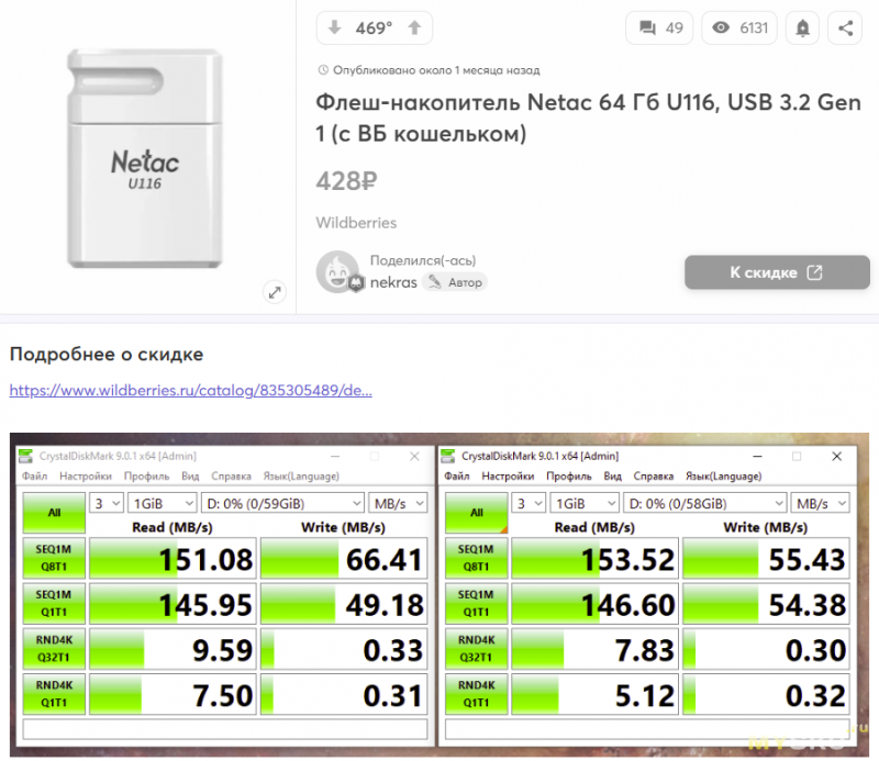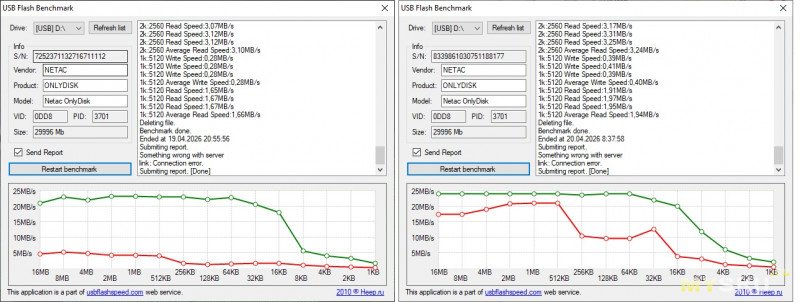 Переходим к модели Netac U116 на 32 Гбайт. Буду сразу сравнивать первый и второй образец.