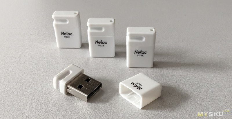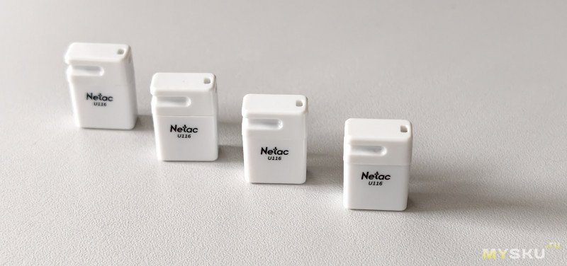 Убиваться и напиваться я не планировал: под мои задачи с натяжкой хватит и того, что уже куплено.USB-флешки Netac U116 поставляются в простой упаковке с блистер-формой (не сохранилась). Сами устройства получили корпус из толстого глянцевого пластика и белые колпачки.