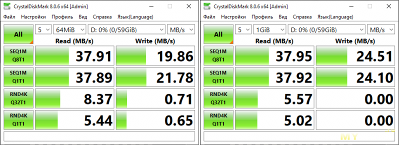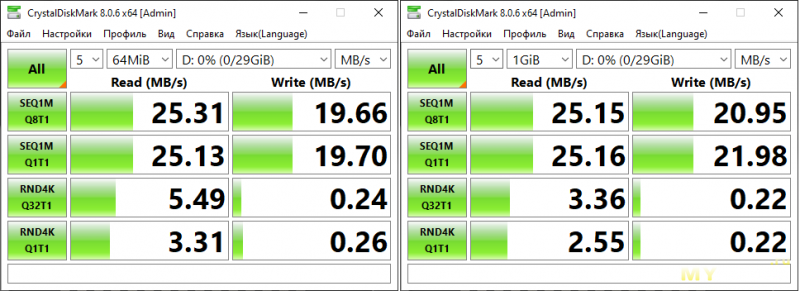 Но в бенчмарке USB Flash превосходство явно за вторым образцом на NAND-памяти от Kioxia.