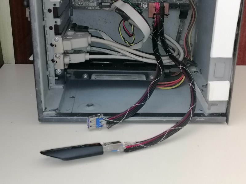 Готовый опытный кабель затягиваем в нейлоновую оплетку и подключаем через него флэшку: