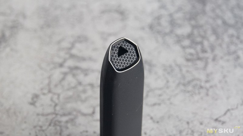 Главным украшением является верхняя панель выдвижного механизма — она получила текстуру «под карбон», что придает устройству более дорогой и динамичный вид. На этой же панели золотистым цветом нанесен логотип SP и указана емкость.