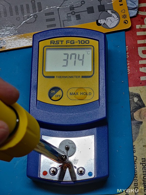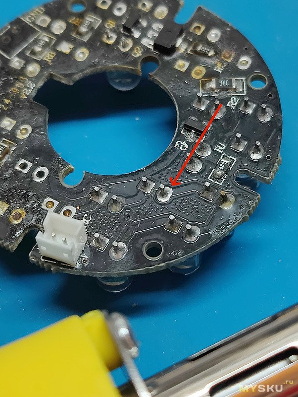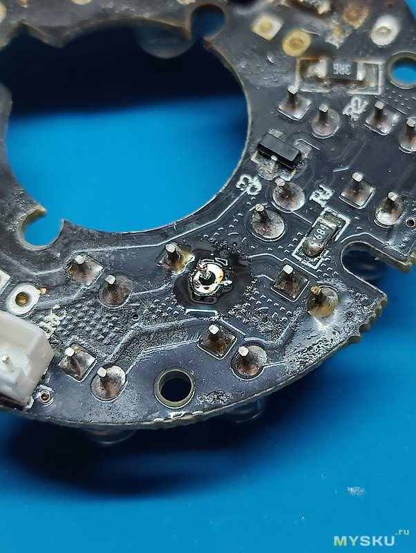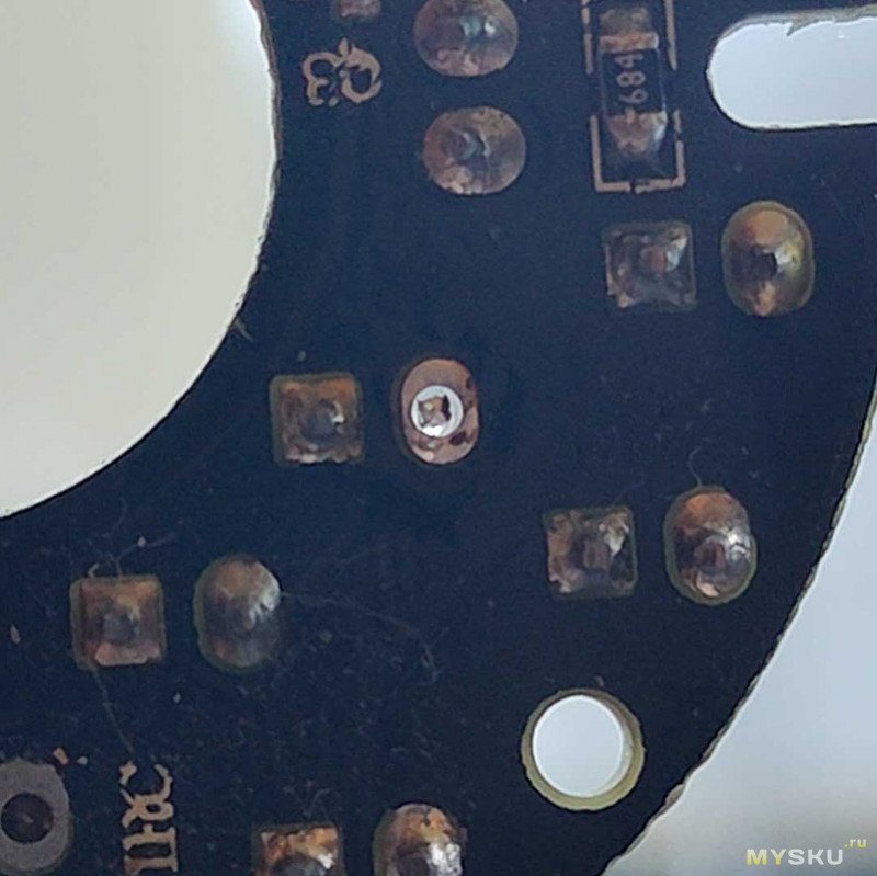 Сразу решил попробовать. Полчаса он вонял и дымил, потом это всё прошло, и стало можно пользоваться. Решил отсосать припой вокруг ножки светодиода. Результат на фотках.