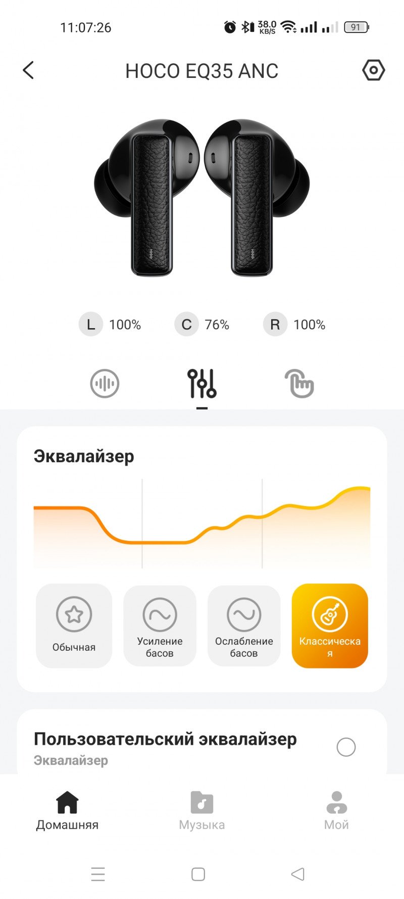 Порадовало мобильное приложение. Во-первых, таким количеством настроек не могут порадовать даже именитые бренды или более дорогие наушники. А во вторых, данное приложение подходит под большое количество наушников от НОСО.