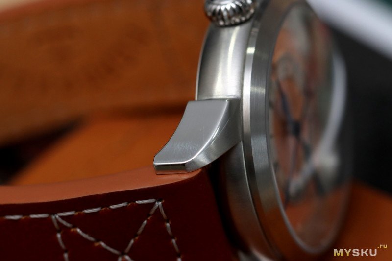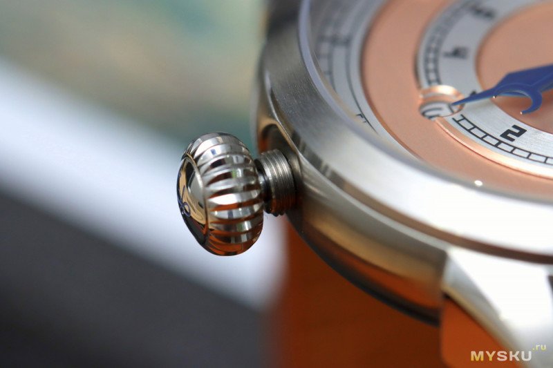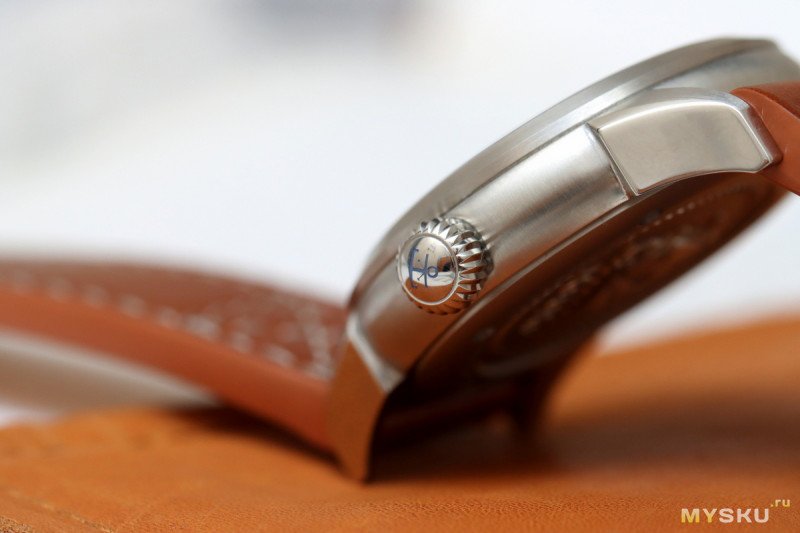 Корпус не стал блестеть. Упор сделан на практичность через сатинирование. Полированными вышли только бока ушек. Еще полировкой хвастается заводная луковидная головка. Последняя, следуя глубоководным традициям, на резьбе. Сам корпус скруглённый и эргономичный.