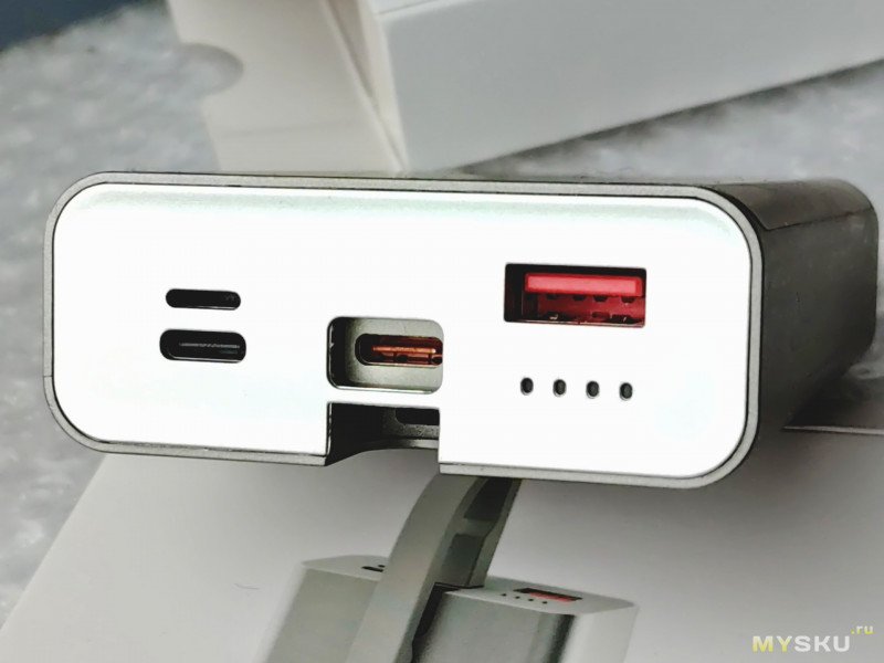 Раньше бы я не стал покупать повербанк со встроенным проводочком, но мой предыдущий Baseus на 30 000 скоропостижно вздулся Я и пользовался то им мало, покупал для кемпинга и дальних поездок. Обидное. И я решил, что ресурса провода мне должно хватить на срок службы банки.