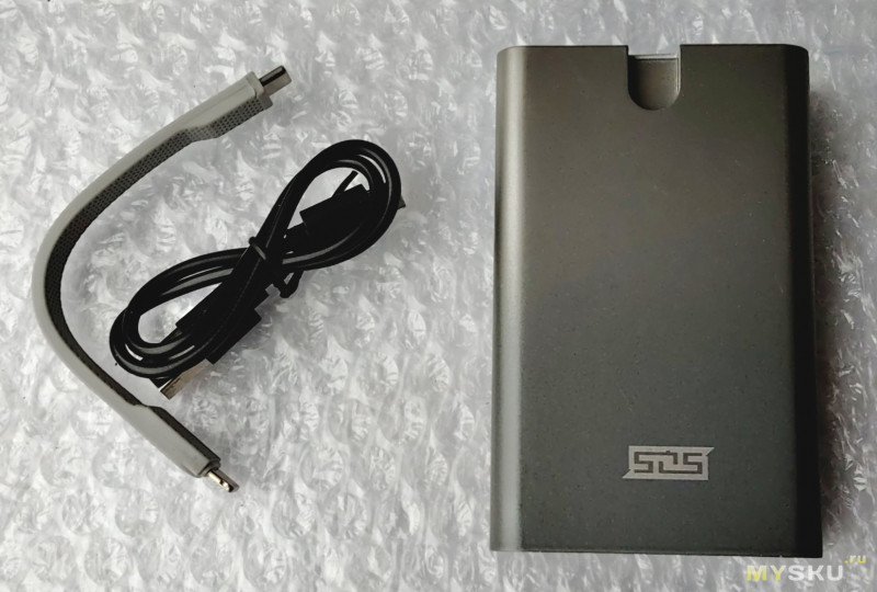 В комплекте — банка силы, шнур для зарядки, и — универсальный кабель переходник (USB — Lightning):