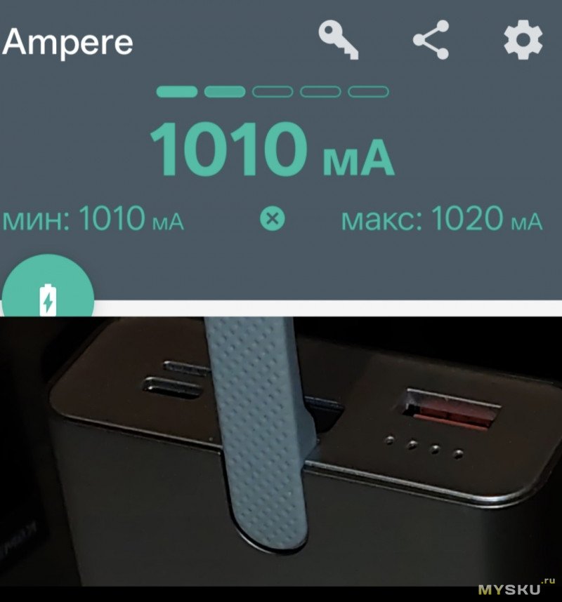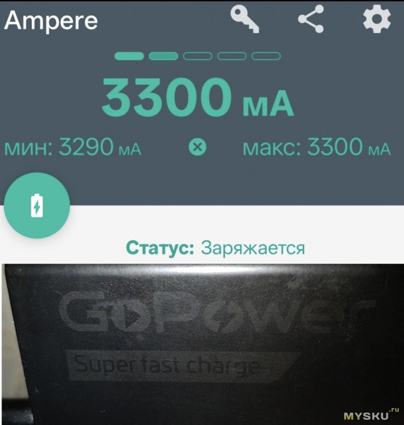 И показания банки GoPower, 10.000mAh (нагрузка и кабель те же)...
