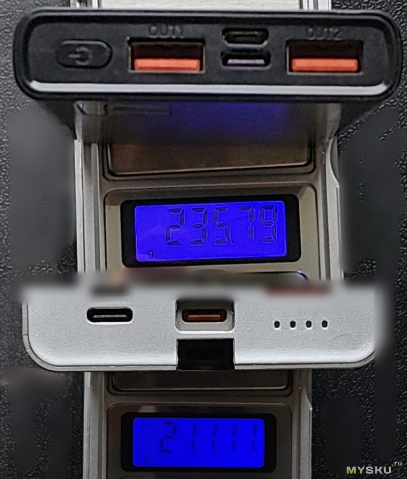 Несколько фото с пауербанкой схожей ёмкости: