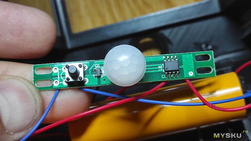 Ниже датчик движения и кнопка включения и переключения режимов.