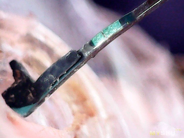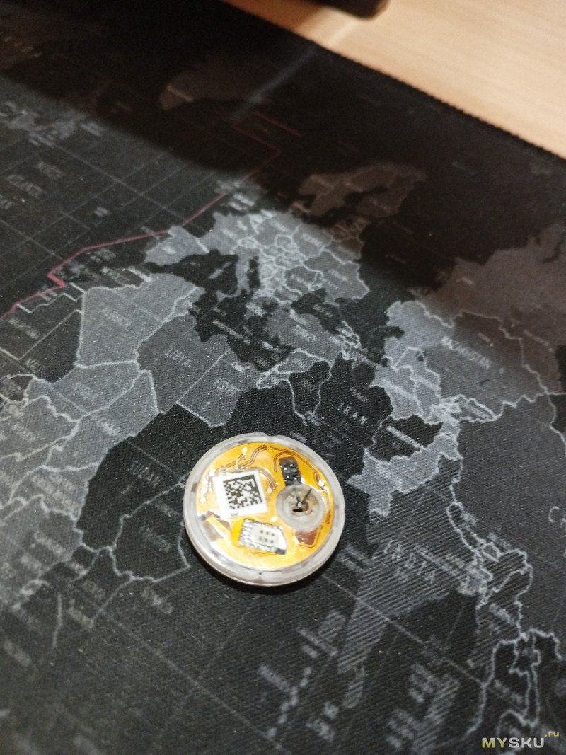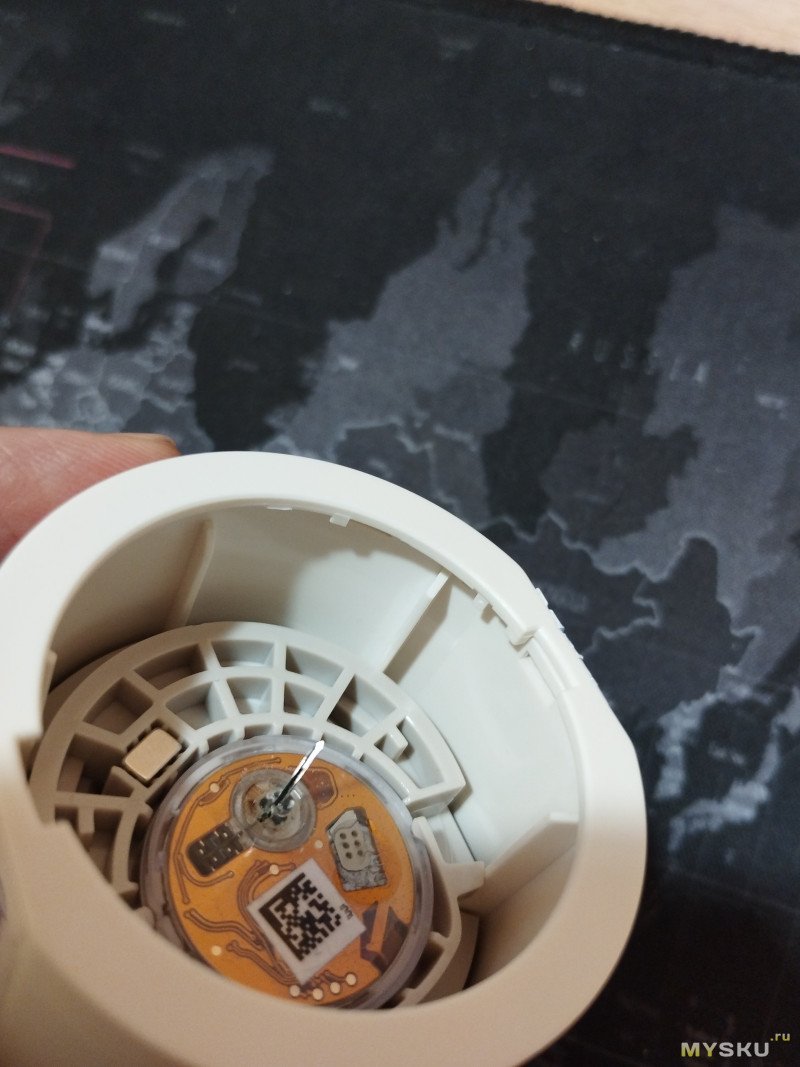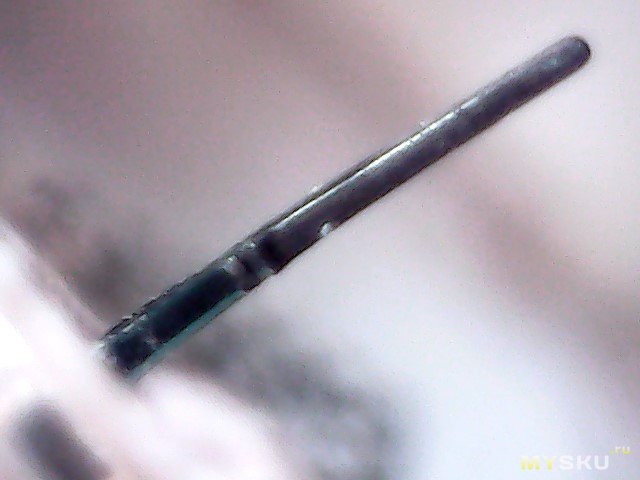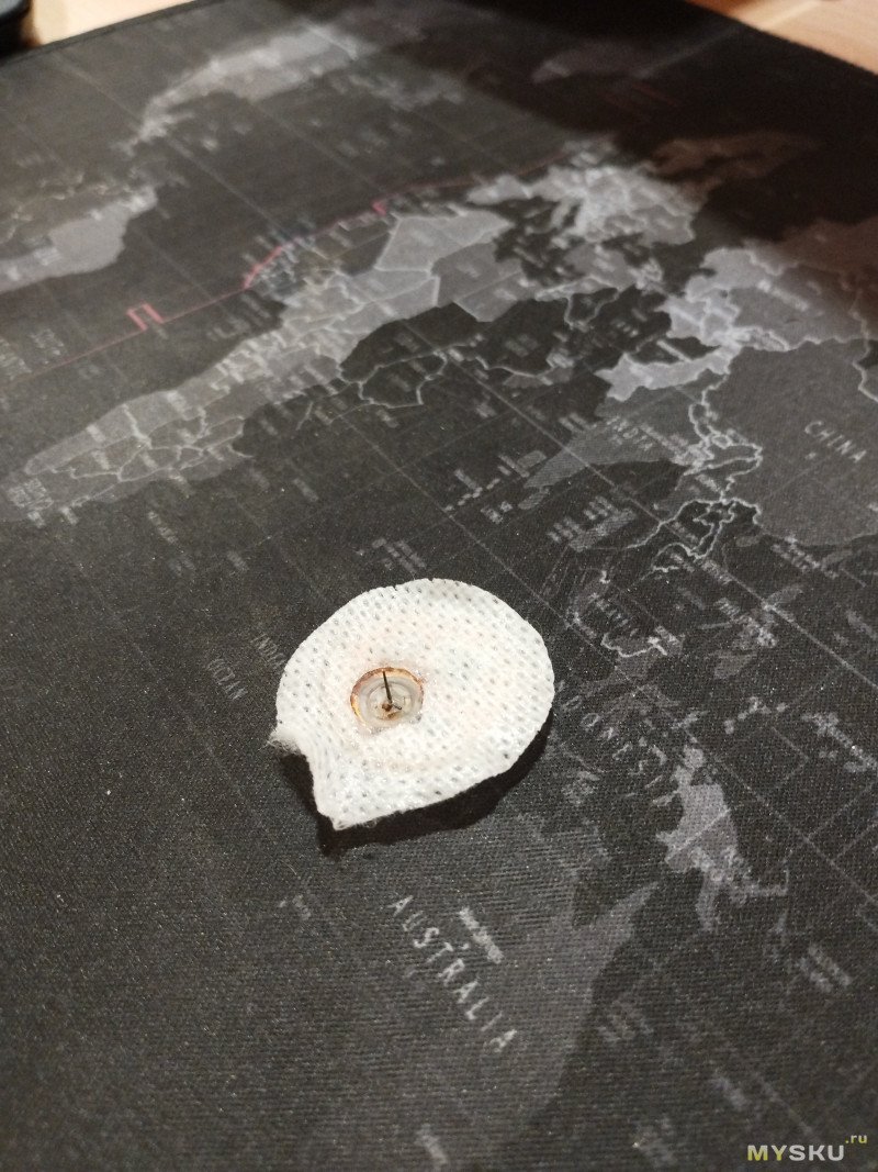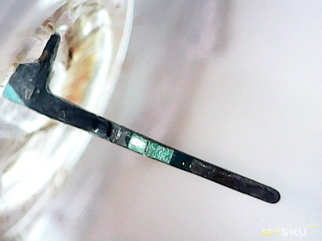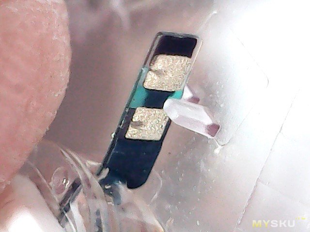 Сторона сенсора, сенсор б/у, переустановленный, выдвинута игла. Виден магнитик, который, я думаю, удерживает сенсор в спящем состоянии по датчику Холла до момента установки.