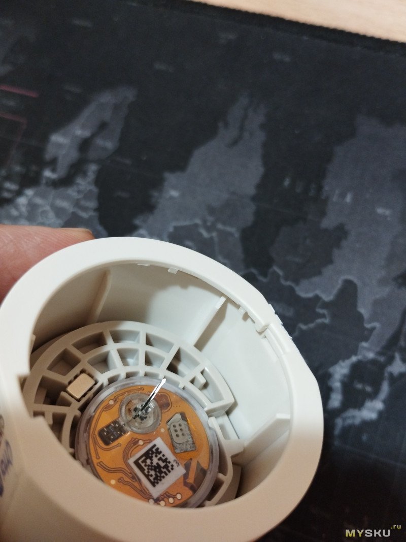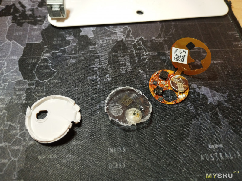 Корпус состоит из 2 половин, но разъединить не смог, пришлось скусывать край. Внутри ничем не залитая гибкая печатная плата, сложенная в 2 слоя.