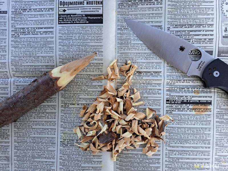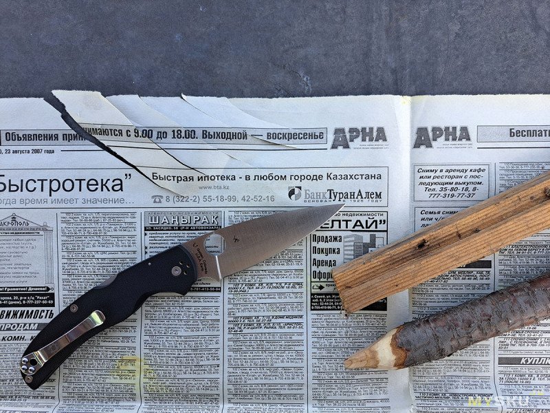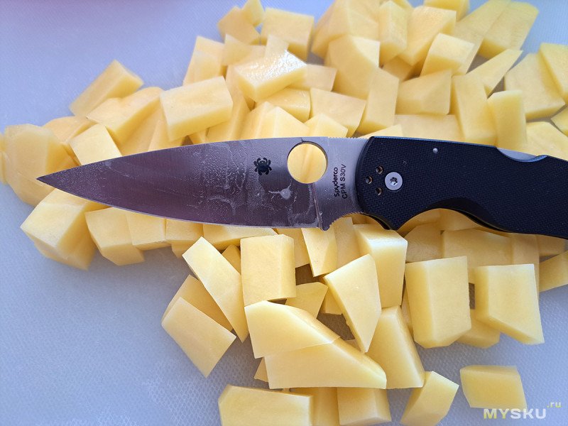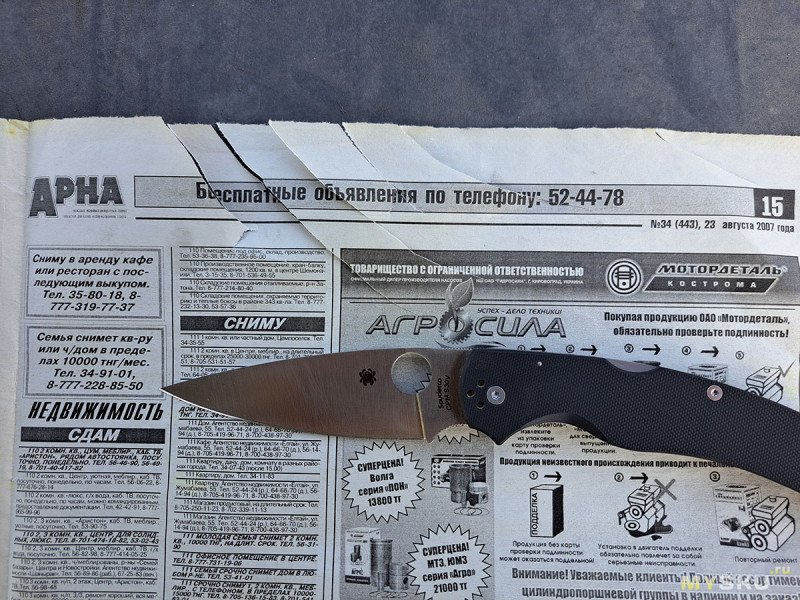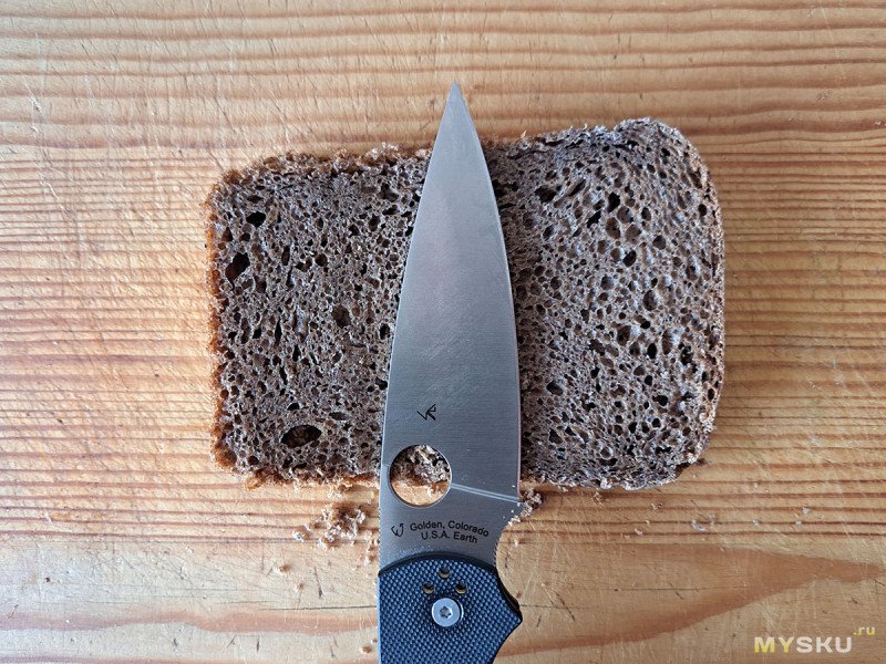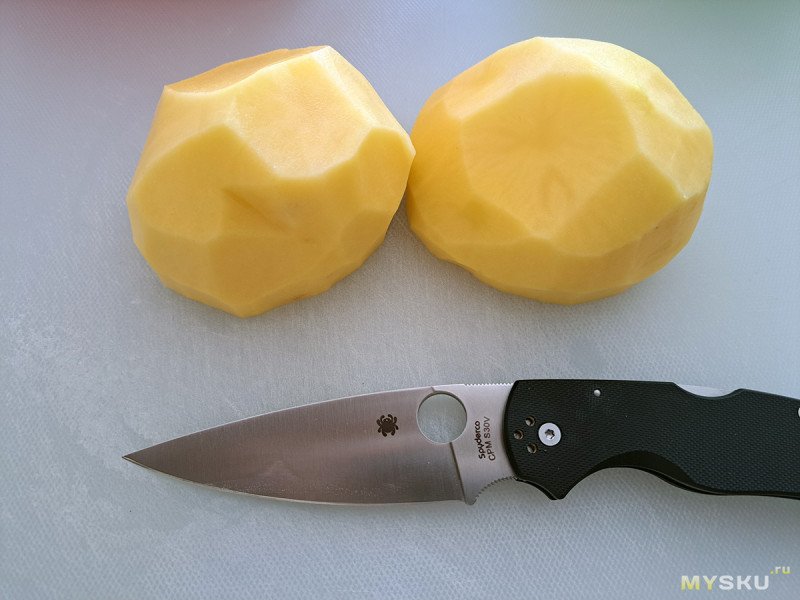 Тоже без проблем, без подклиниваний. Но все на уровне нормального складного ножа. А вот у Милитари клинок сильнее утончается ближе к кончику, и в итоге рез не хуже среднего кухонника.