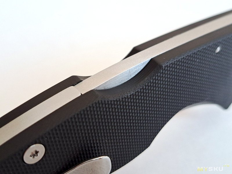А вот насечка на обухе без горбика, не очень удобна для упора большим пальцем.