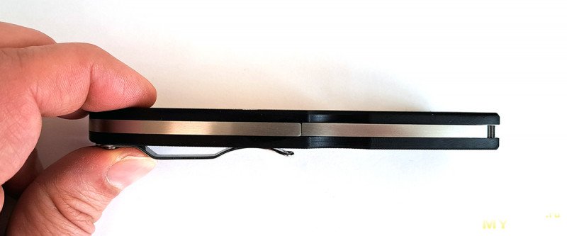 Забыл сделать отдельное фото, но у ножа нет стальных лайнеров. Поэтому и вес относительно небольшой – 117 г.