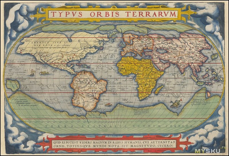 Пример одной из карт В состав тех земель включали и Австралию. В те времена существовали целые теории о жизни, природе, животном и растительном мире в тех краях. Некоторые исследователи даже утверждали, что там проживает более пяти десятков миллионов человек.