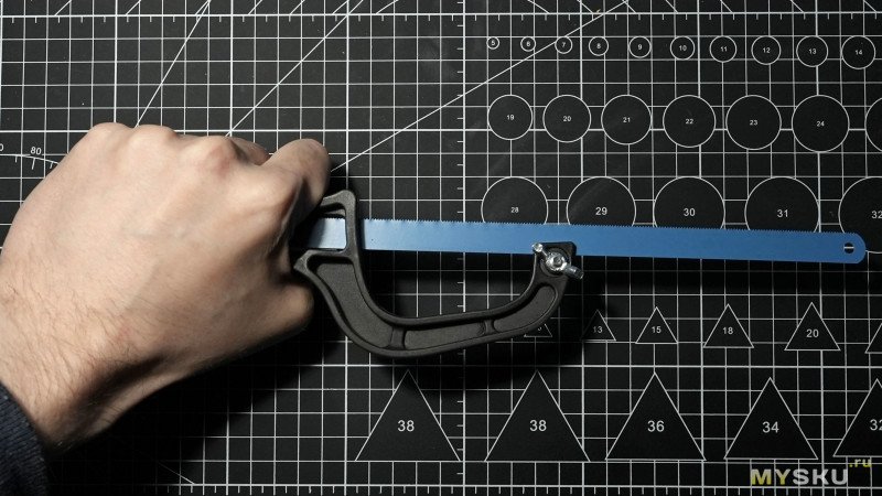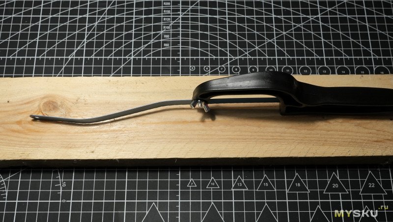 А основная польза этой ручки — зажимать и пилить можно обломками пилок. А чтобы не было такой же фигни как у автора — зажимают конец полотна пилки, а не серединой, и пилят внутренней частью, которая не гуляет.