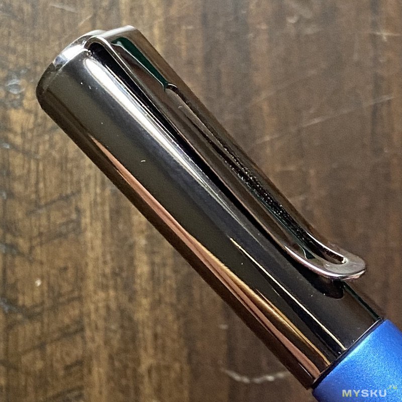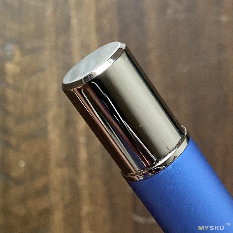 Колпачок на магнитной защёлке — и это изумительно, не надо ничего откручивать, закручивать, просто стянул — и ручка готова писать. А с каким приятным «чпоком» он снимается — не каждая винная бутылка готова подарить такие ощущения. И надевается тоже классно. К слову, колпачок отлично держится на торце ручки за счёт того же самого магнита. При этом колпачок спокойно прокручивается относительно корпуса, но чтобы его снять, надо приложить ощутимое усилие.