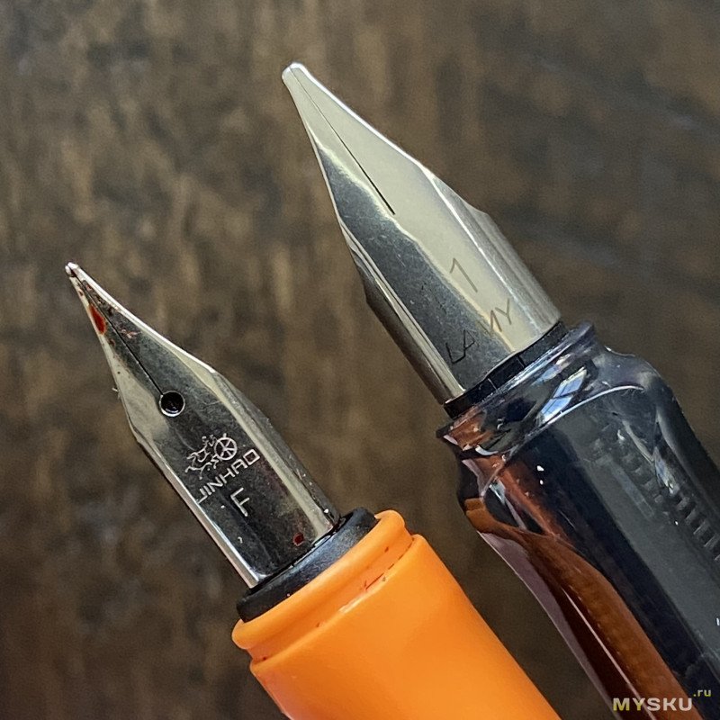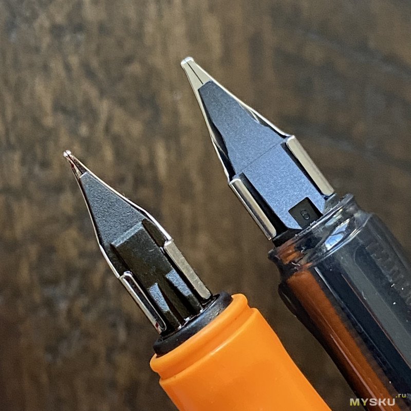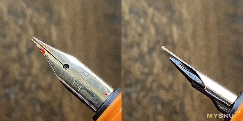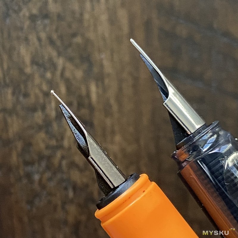 Вот так перо выглядит по сравнению с его собратом из Германии (прямо чеховские тонкий и толстый).