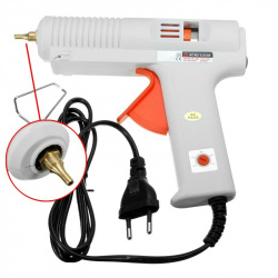 Это удобный пистолет со сменными соплами, силиконовой защитой на носике и выключателем. Разогревает сильно и быстро.