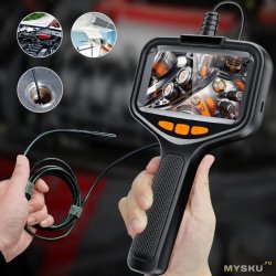 4.3" цветной IPS экран, светодиодная подсветка, регулировка яркости, аккумулятор 2600мАч. Водонепроницаемость IP67 (камера). Инструмент для ремонта автомобилей, обслуживания сантехники и других задач, требующих легкого доступа к труднодоступным местам. Камера-бороскоп с заявленным разрешением 1920x1080 пикселей. 8 светодиодных фонарей регулируются по яркости.